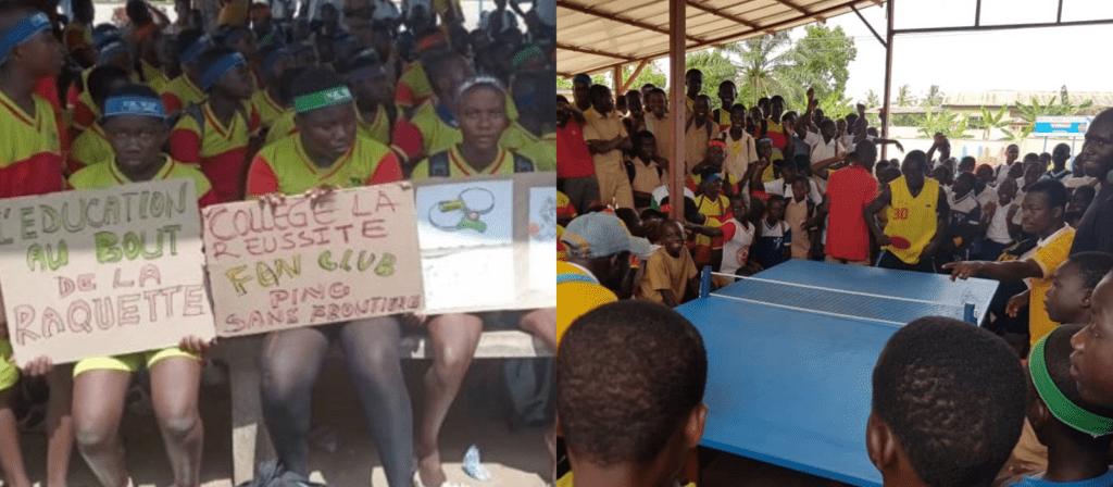 Lors de sa visite à Maféré en Côte d’Ivoire, Ping Sans Frontières a remis trois tables de tennis de table à trois écoles de la ville avec toujours le même objectif de rendre le ping-pong accessible à tous.